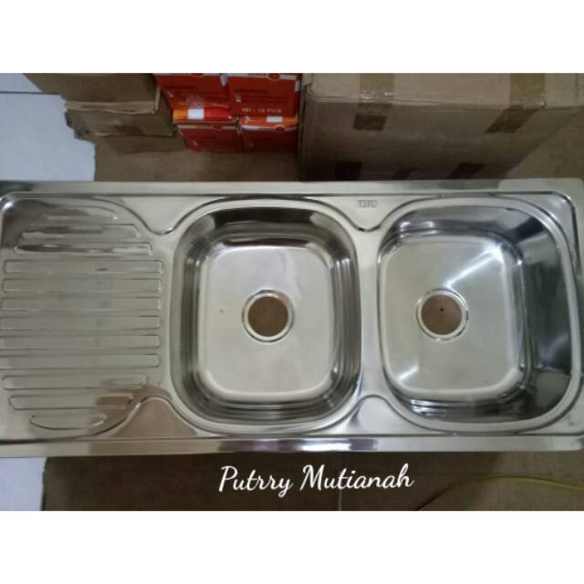 Bak Cuci Piring 2 Lubang Stainless Kitchen Sink Ukuran 110 Cm