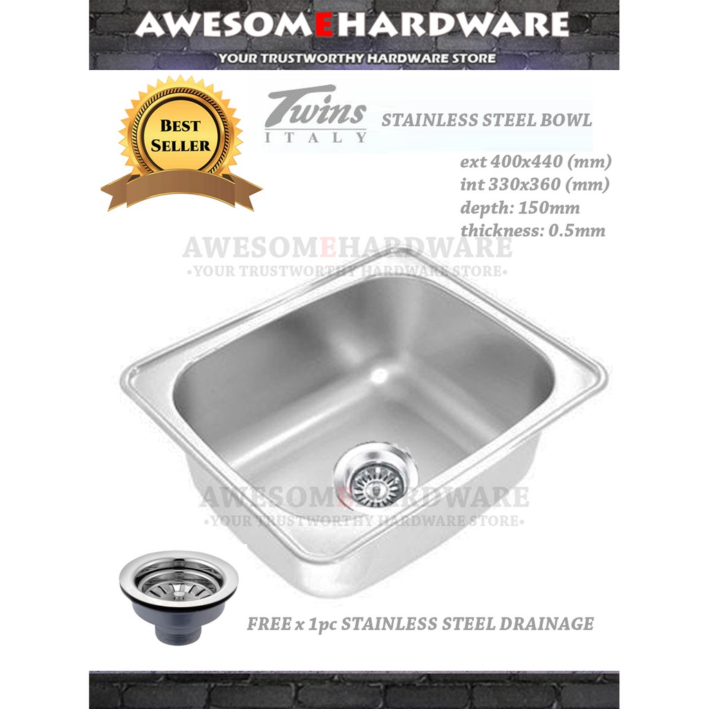 Twins 4440 0 5mm Stainless Steel Single Kitchen Sink Bowl Shopee